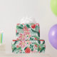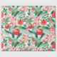 Des flancs rouges fantaisistes décorent ce mignon motif de Noël dans un design rétro comme ceux populaires dans le dernier milieu du siècle. Mélangés dans les éléments floraux jolies et un peu exotiques sont de mignons baubles roses et des ornements contrastés assortis. Tous ces repos au milieu des feuilles émeraude et vert clair et autres feuillage. Très classe et insolite pour votre emballage cadeau de vacances.