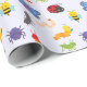 Ce papier d'emballage d'anniversaire de bogue est amusant et coloré, avec une fête de bogue comprenant une abeille mignonne, une araignée violette, une chenille, une fourmi, une coccinelle, un papillon et un escargot - le tout célébrant l'anniversaire de votre enfant. Les filles comme les garçons adoreront ces personnages de bug !