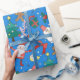 Cadeau Papier d'enveloppement de Père Noël et d'amis bleu