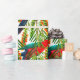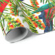 Ce papier d'emballage couleur aquarelle king perroquet et fleurs de bonbons est une belle façon de décorer vos cadeaux! Le papier d'emballage à motifs présente des perroquets king réalistes et des fleurs de callistemon.