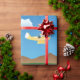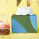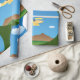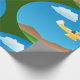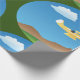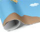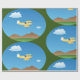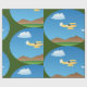 Un petit avion jaune survolant un paysage. Cette conception semble vraiment efficace sur ce papier d'enveloppement