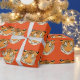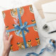 Papier à envelopper avec un imprimé tigre mignon sur un arrière - plan orange. Customisez cet objet ou achetez tel quel.