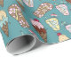 Ce papier d'emballage présente des cônes de crème glacée fantaisistes dessinés à la main avec des gouttelettes et des cerises, des boissons tropicales rafraîchissantes avec des parapluies et des tongs floraux. Contre un riche arrière - plan turquoise, les couleurs vives et les détails ludiques évoquent une ambiance hawaïenne insouciante et dénuée de souci.