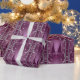 Enveloppez vos cadeaux avec style avec ce beau papier d'emballage de 60 livres d'Arbre de Noël violet et argent. Choisissez la qualité brillante, linge ou photo.