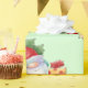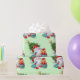 Le beau gnome du Père Noël avec les arbres de Noël et présente sur l'arrière - plan vert clair