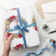 Jolie, les couronnes de Noël sont présentées sur ce papier d'emballage cadeau de vacances. Un look de vacances enjoué fait de cet endroit parfait pour envelopper les cadeaux pour Noël, les anniversaires de vacances et plus encore!