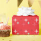Ce papier d'emballage a des vibes rétro, avec un motif étoilé de Noël avec un arrière - plan rouge. Les étoiles sont roses, pourpres, bleues et roses.