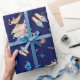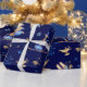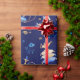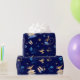Des nuits arabes enveloppant du papier avec des illustrations bleues et dorées de lampes, coussins, chaussures, hookahs et fleurs sur un arrière - plan bleu royal. Vous pouvez modifier la couleur de l'arrière - plan.