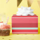 Ce papier d'emballage a des vibes rétro, avec un motif rayé de Noël. Les rayures sont roses, pourpres, bleues et roses.