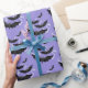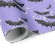 Le papier d'emballage d'Halloween est affiché dans une impression de chauves-souris noires. Color Purple Matte Montré Customisez ce papier ou achetez simplement tel quel.