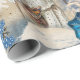 Dans l'ensemble, ce papier d'emballage de Noël est un mélange harmonieux d'éléments hivernaux et de personnages festifs. La combinaison de tons bleus, de flocons de neige complexes, de Père Noël en blanc, de l'elfe fantaisiste et de la femme sereine aux oiseaux blancs crée une scène captivante et réconfortante qui résume la magie de Noël.