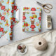 Papier D'Enveloppement De Noël Bleu Et Coloré, Motif De Drôle Cartoon Moose Thème Et Trimmings De Noël