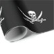 Papier enveloppant montré avec un crâne mignon et des pales imprimés pirates sur un arrière - plan noir. Customiser cet objet ou acheter tel quel.