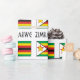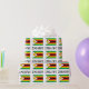 Le drapeau zimbabwéen a sept rayures. L'une est noire et au centre. Deux sont rouges et sont en haut et en bas de la bande noire. Des rayures jaunes bordent les rouges, avec du vert bordant chaque bande jaune. Un triangle blanc présente à gauche une étoile rouge et un oiseau zimbabwéen jaune. Dans ce dessin le drapeau montre avec le mot ZIMBABWE ci-dessous en lettres noires. Ça a l'air cool sur ce papier d'emballage.