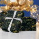 Ce papier d'emballage présente un design tourbillon en marbre foncé luxueux avec des accents d'or et de vert, parfait pour ajouter une touche élégante à tout cadeau.