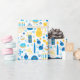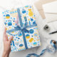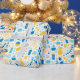 Ce papier d'emballage moderne est super mignon ! Il a des menorahs, des bougies, des cadeaux, des gelts, et des étoiles de David tous en bleu et or. Obtenez assez pour envelopper tous vos cadeaux ! Ils auront l'air fabuleux !