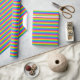 Un papier d'emballage conçu avec un motif rayé avec des couleurs arc-en-ciel brillantes en fine largeur.