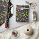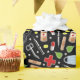 Enveloppement cadeau d'anniversaire créatif pour médecin avec fournitures médicales et motif de fleurs sur un arrière - plan noir.