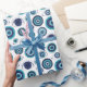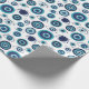 Papier d'emballage grec moderne illustré à la main en bleu et blanc méditerranéen bleu et motif pour oeil.
