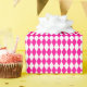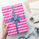 Un papier d'emballage conçu avec un motif arlequin rose et blanc chaud de taille moyenne. Vous pouvez changer le blanc pour une couleur différente de manière simple.