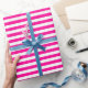 Papier d'emballage conçu avec un motif rayé rose et blanc chaud de taille moyenne. Vous pouvez changer le rose pour une couleur différente.