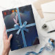 Une belle scène d'une maison dans une nuit d'hiver enneigée. Cette conception semble vraiment efficace sur ce papier d'enveloppement