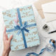Papier d'emballage floral de couleur or et bleu clair.