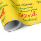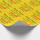 Ce papier d'emballage d'anniversaire customisé et basique comporte un message comme "Prénom, nous espérons que vous avez un grand 92e anniversaire!", où le nom et le numéro d'anniversaire peuvent être personnalisés. Il présente également des formes étoiles décoratives. L'arrière - plan est de couleur jaune. Un papier comme celui-ci pourrait peut-être servir à envelopper les cadeaux qui sont donnés pour célébrer l’anniversaire de quelqu’un. [~Z0000243]