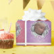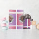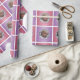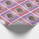 Papier photo personnalisé de Noël du bébé. Ce papier d'emballage de vacances coloré et festif présente des carrés carrelés rose et violet, tous personnalisés avec l'année en cours, et la photo personnalisée de votre petite fille.