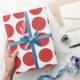 Papier d'enveloppement Mini Pois mignon et tendance. Ce design présente des pois en petits cercles en rouge et blanc. Un texte peut être ajouté à cette conception pour lui donner une touche personnelle.