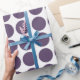 Papier d'enveloppement Mini Pois mignon et tendance. Ce design est composé de pois en petit cercle en violet et blanc. Un texte peut être ajouté à cette conception pour lui donner une touche personnelle.