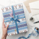 adorable papier d'emballage cadeau pour bébé à thème militaire ou patriotique! Ce papier mignon a le mot BÉBÉ dans les couleurs patriotiques, étoiles et rayures, avec un arc sur un arrière - plan bleu. Bon papier cadeau pour un baby shower ou un cadeau bébé!