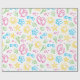 Ce rouleau d'enveloppement cadeau présente une impression amusante qui dit été! Dans les tons vifs de vert, jaune, rose et turquoise, l'imprimé présente du soleil, des cônes de crème glacée, des tongs, des lunettes de soleil, des coquillages, des étoiles et des pierres de plage sur un arrière - plan blanc.