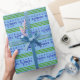 Cadeau Papier d'enveloppement rayé bleu et vert personnal