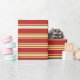 Ce papier d'emballage est composé d'un motif de rayures aux couleurs comme le rouge et le bronzage. Il peut être amusant d'utiliser du papier d'emballage comme celui-ci pour préparer des cadeaux donnés pour célébrer un anniversaire, un mariage, un anniversaire ou tout autre événement.
