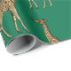 Papier d'emballage à thème Safari, ce design présente des girafes dorées sur un arrière - plan vert. Absolument extraordinaire, commandez pour vos besoins de cadeaux.