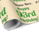 Ce papier d'emballage d'anniversaire basique et personnalisable comporte un message comme "A-Name-Here, happy 93rd anniversaire!", où le nom et le numéro d'anniversaire peuvent être customisés. L'arrière - plan est coloré en bronze. Un papier comme celui-ci peut être utilisé pour envelopper des cadeaux donnés à quelqu'un pour célébrer son anniversaire. [~Z0000243]