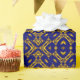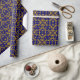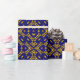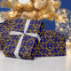 Ce design de papier d'emballage design a un motif d'inspiration tribale original dans des tons faux or sur un arrière - plan bleu royal. Il fera certainement ressortir vos dons!