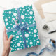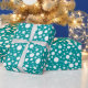 Des taches blanches de tailles différentes sur un arrière - plan turquoise.