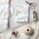 Ce papier d'emballage de douche à nuptiale, vintage et floral, ravira la mariée lorsqu'elle verra son nom rayé sur le papier.