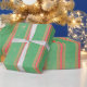 CADEAU PAPIER EN FROMAGE ROUGE ET VERT STRIPES SUR GRIS