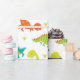 Motif mignon avec des dinosaures assortis dans les tons bleu turquoise, orange et vert. Idéal pour les baby showers à thème dinosaures ou les fêtes d'anniversaire.