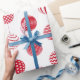 Un papier d'emballage avec un motif à billes de Noël rouge et blanc en grande taille. Customiser la taille du motif, la couleur arrière - plan entre autres options.