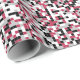 Ce papier d'emballage présente un motif géométrique coloré dans Viva Magenta tendance, noir, gris et blanc, avec grille blanche. Les carrés sont colorés dans un motif aléatoire et vous pouvez modifier les couleurs dans l'outil Design.