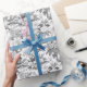 Profitez d'une élégance intemporelle grâce à ce papier d'emballage motif romantique à chinoiserie noir et blanc, parfait pour les mariages, les anniversaires et plus encore.
