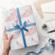 Envelopper les cadeaux pour la mariée et le marié avec un rouleau de papier Mariage de Vin Peacock Rose. La conception papier enveloppante est faite d'un arrière - plan gris clair et blanc de vigne à feuilles avec un paon rose carrelé et vibrant. Papeterie mariage supplémentaire et cadeaux disponibles avec ce design aussi.