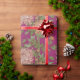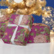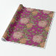 Envelopper le papier avec motif floral. Chrysanthèmes rose et orange sur l'arrière - plan bordeaux.