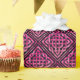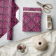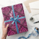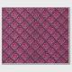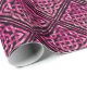 Un emballage cadeau d'un motif de design de noeud celtique rose diamant répété contre un arrière - plan noir.