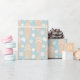 Planche de surf en bois et motif en coquillages sur un arrière - plan bleu. Coordonnées avec Surfboard Beach Baby collection.