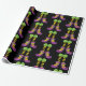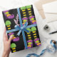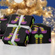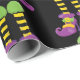 La motif à thème Halloween présente des sorcières fantaisie pieds décorés de bas rayés colorés et des chaussures pointues violettes sur arrière - plan noir